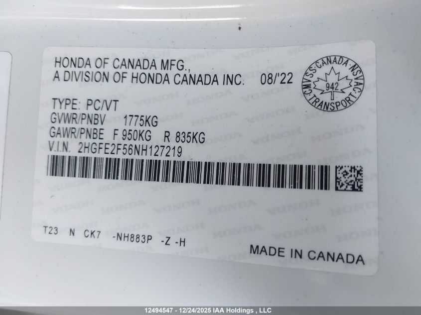 - Vin: 2HGFE2F56NH127219