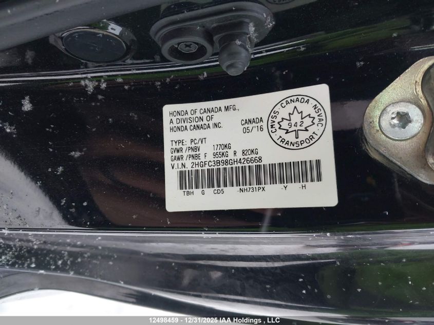 - Vin: 2HGFC3B98GH426668