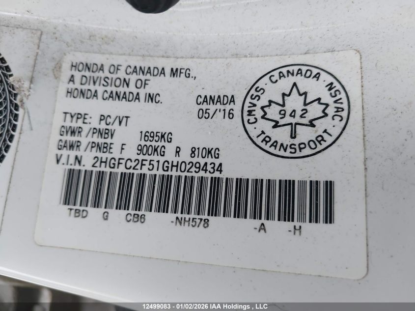 - Vin: 2HGFC2F51GH029434