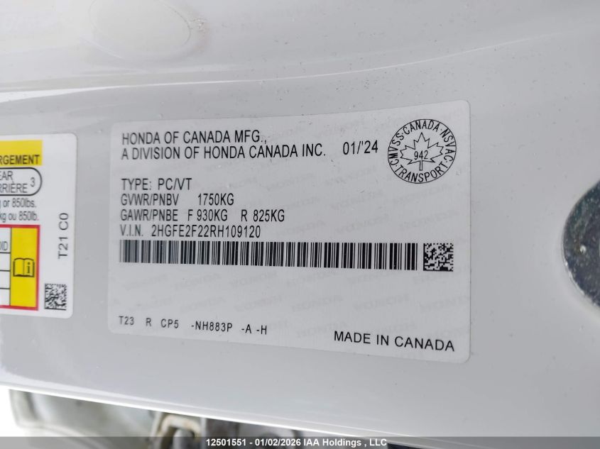 - Vin: 2HGFE2F22RH109120
