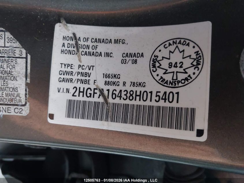 - Vin: 2HGFA16438H015401