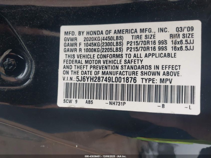 - Vin: 5J6YH28749L001876