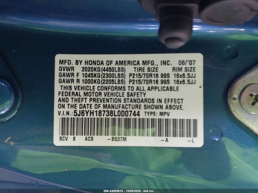 - Vin: 5J6YH18738L000744