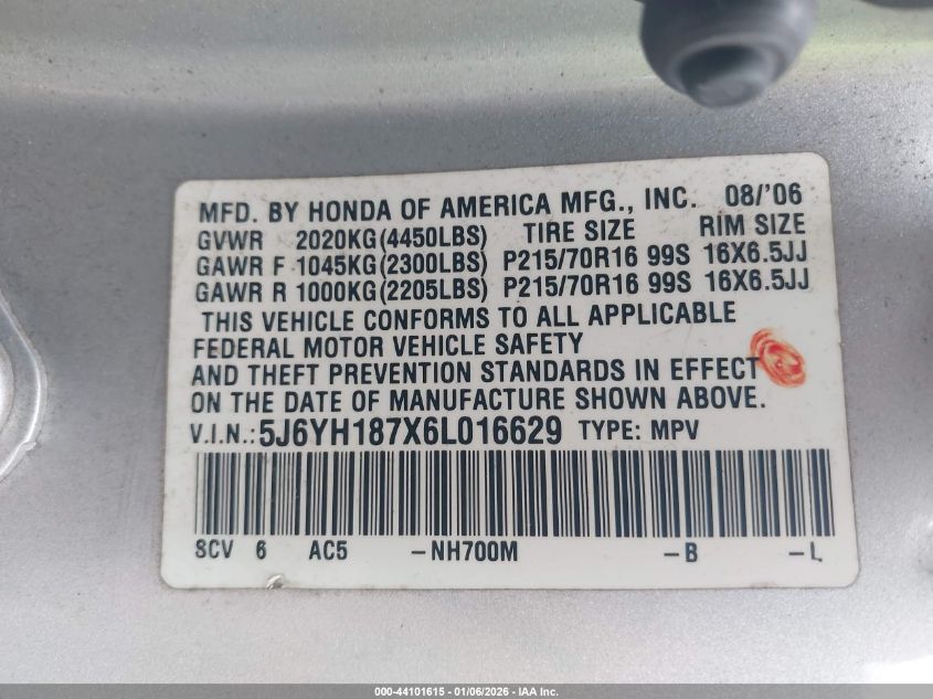 - Vin: 5J6YH187X6L016629