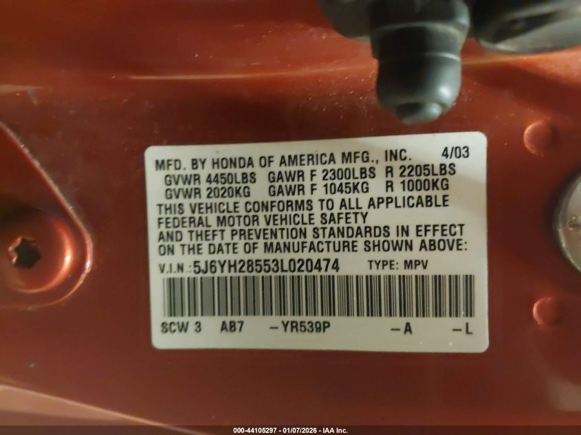 - Vin: 5J6YH28503L029809