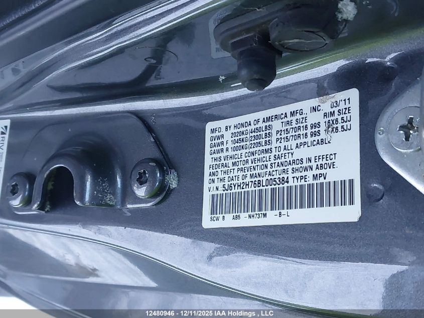 - Vin: 5J6YH2H76BL005384