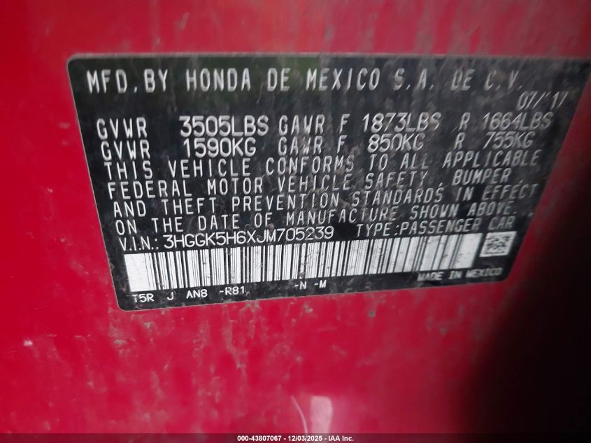 - Vin: 3HGGK5H6XJM705239