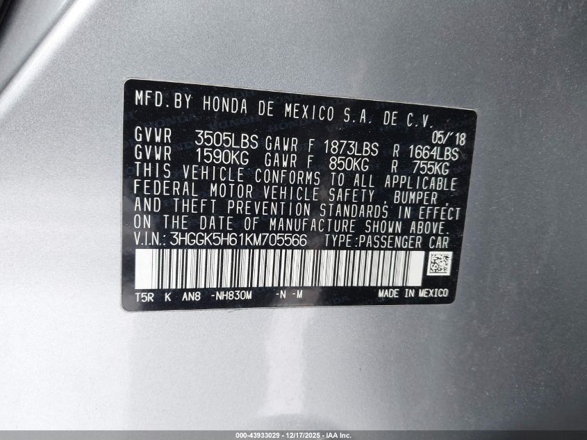 - Vin: 3HGGK5H61KM705566