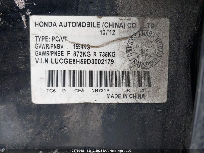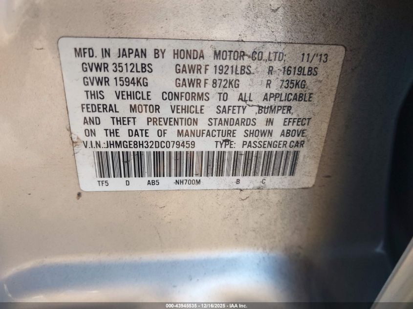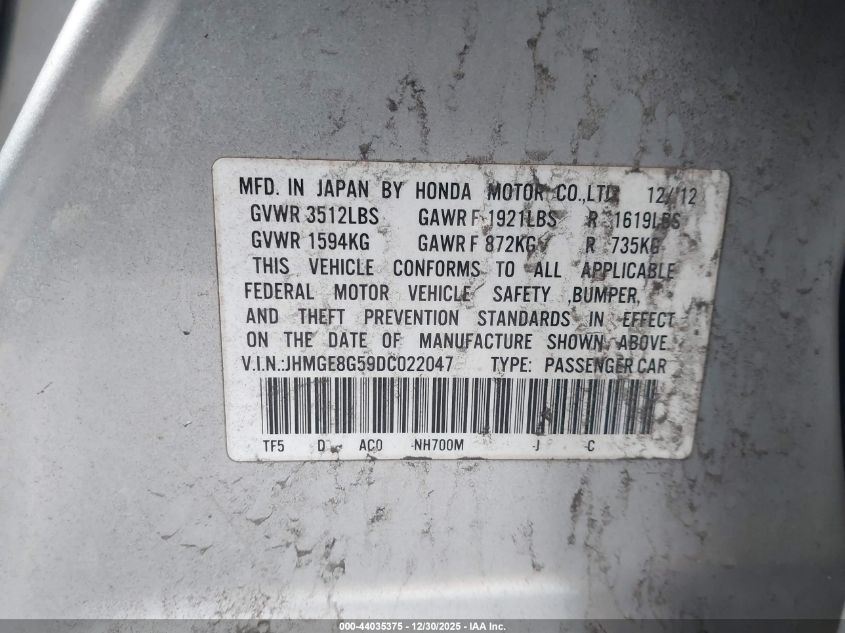 - Vin: JHMGE8G59DC022047