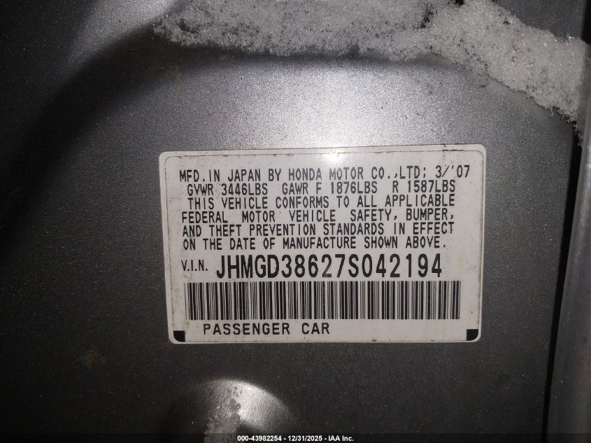 - Vin: JHMGD38447S007607
