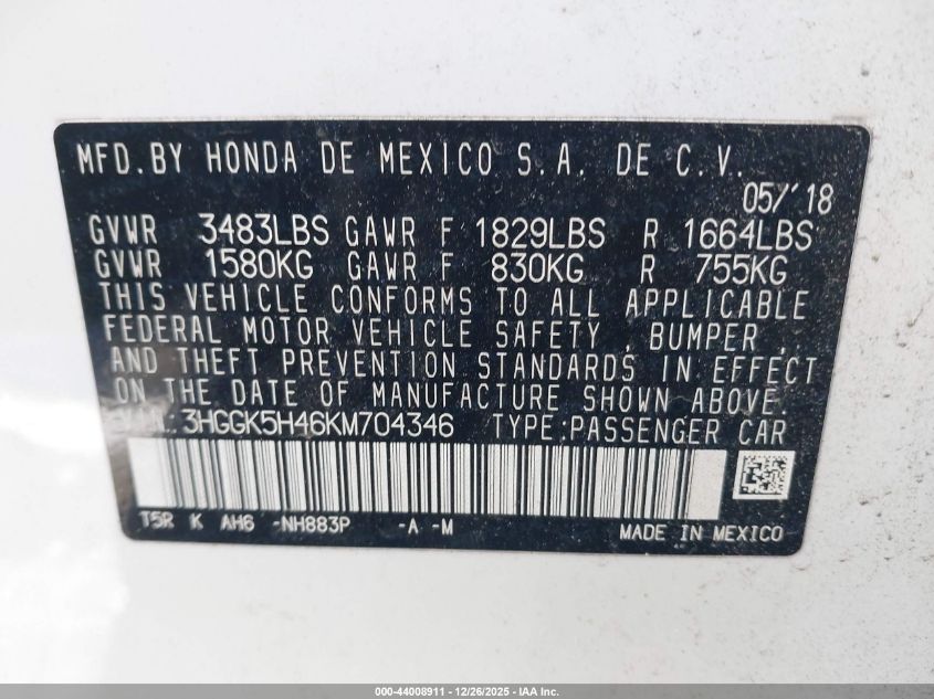 - Vin: 3HGGK5H46KM704346