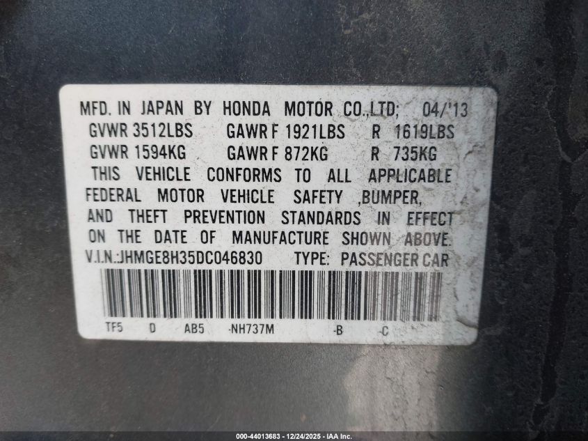 - Vin: JHMGE8H35DC046830