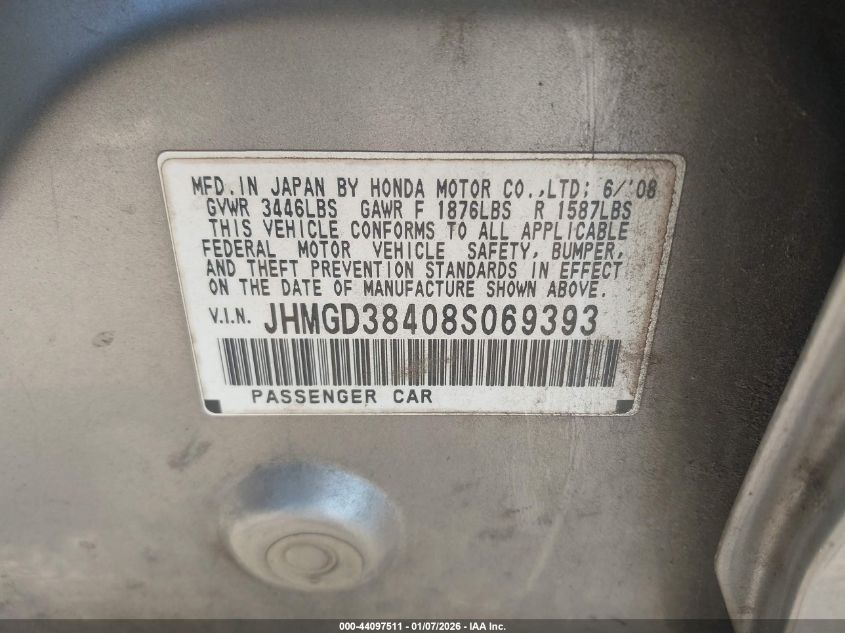 - Vin: JHMGD38408S069393