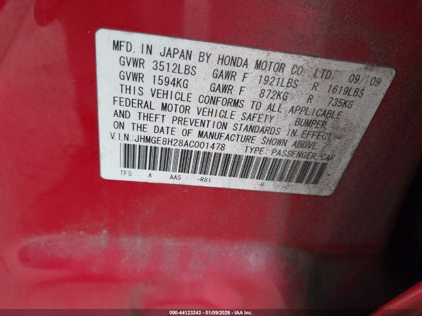 - Vin: JHMGE8H43AS019930