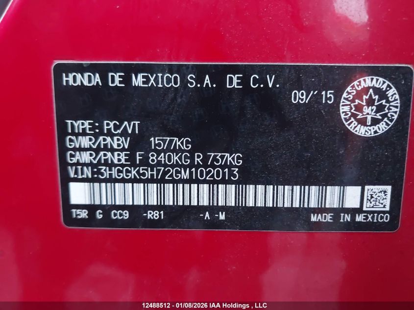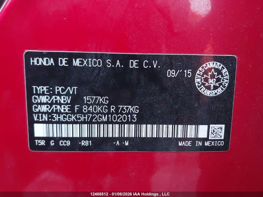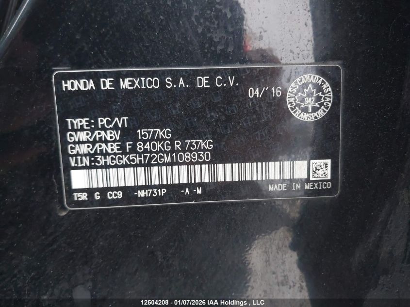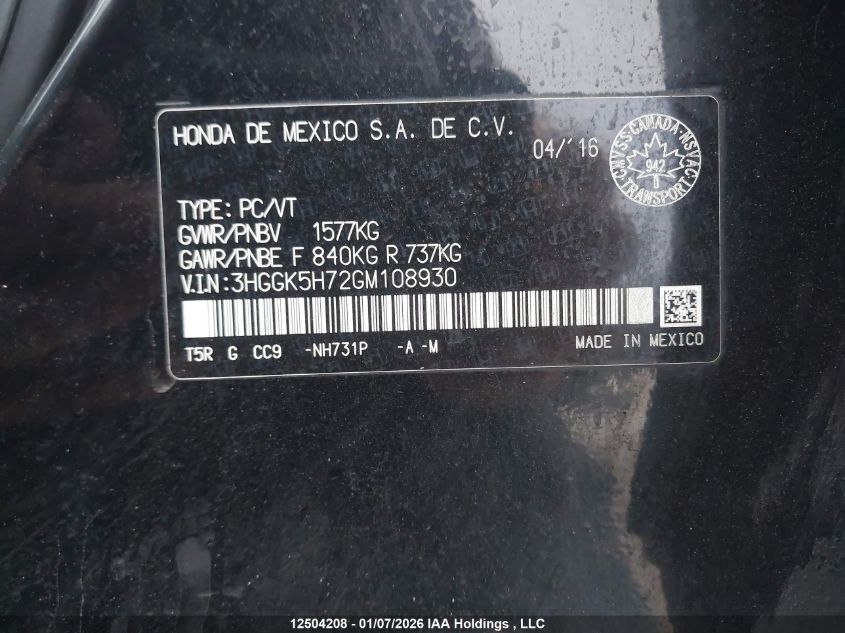 - Vin: 3HGGK5H72GM108930