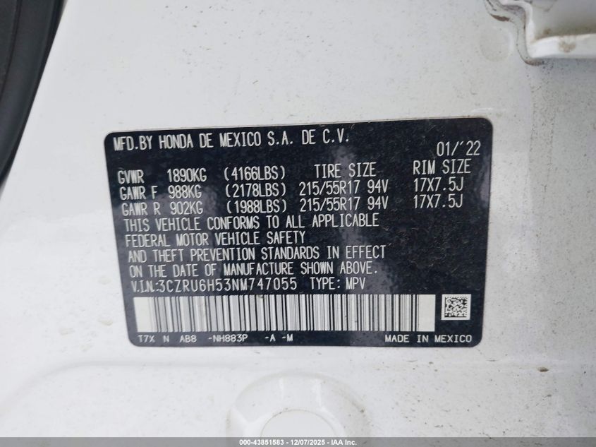 - Vin: 3CZRU5H34NM707026