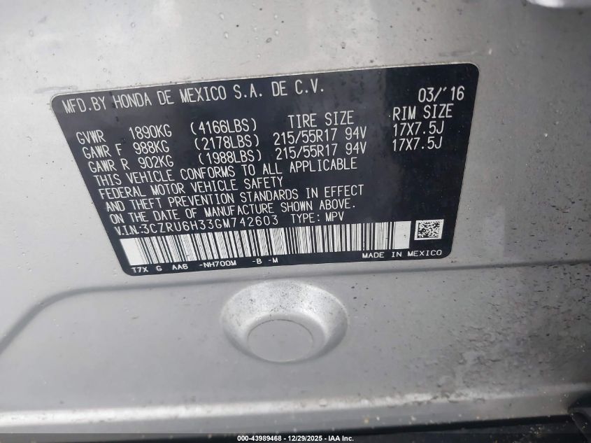- Vin: 3CZRU6H33GM742603