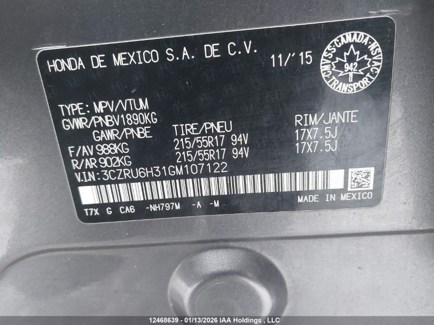 - Vin: 3CZRU6H31GM107122
