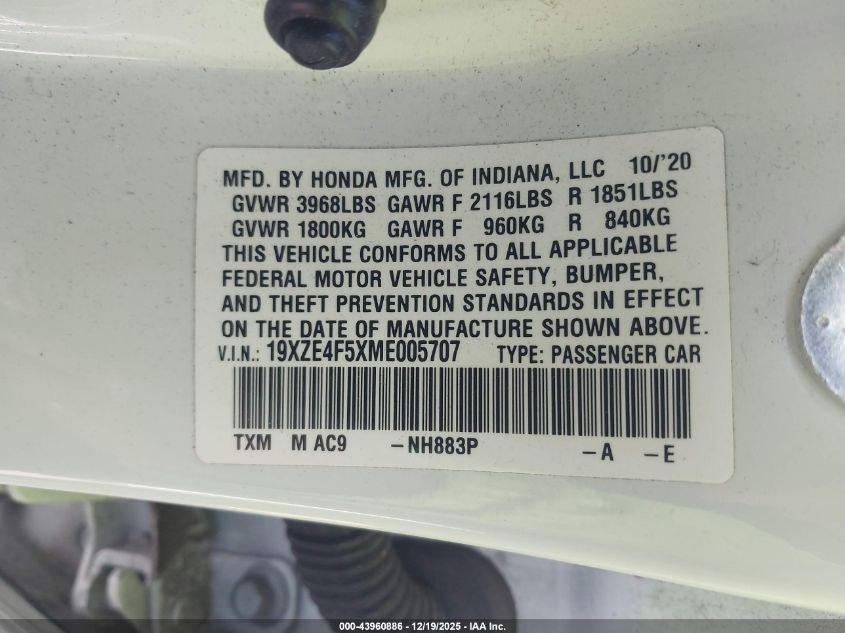 - Vin: 19XZE4F5XME005707