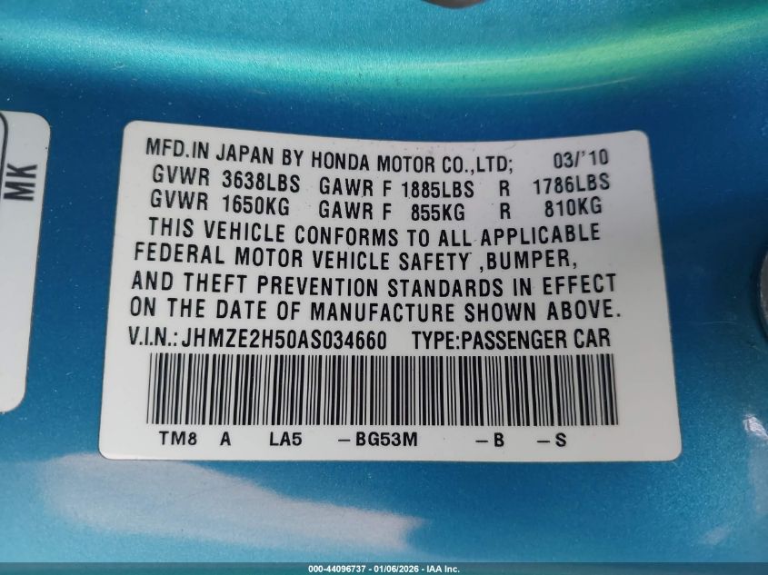 - Vin: JHMZE2H79AS041866