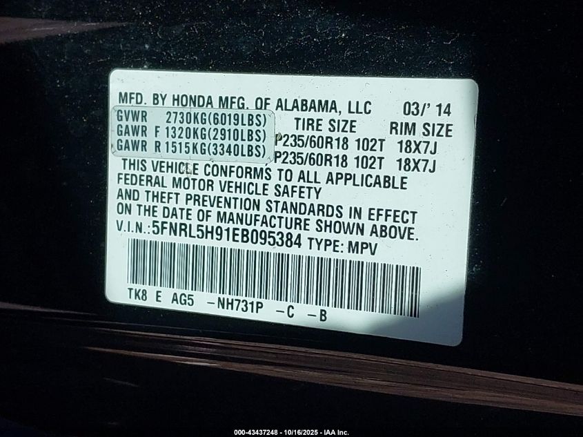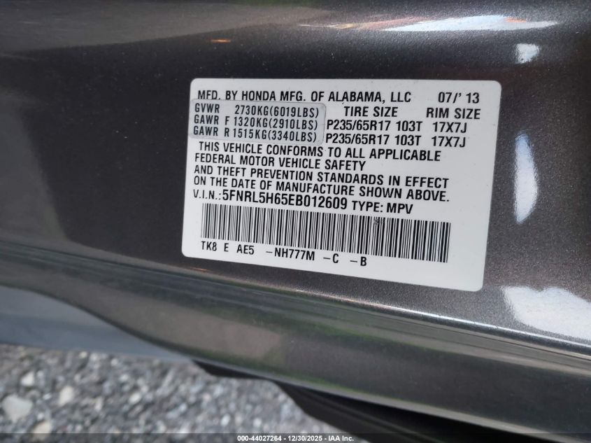 - Vin: 5FNRL5H9XEB137602