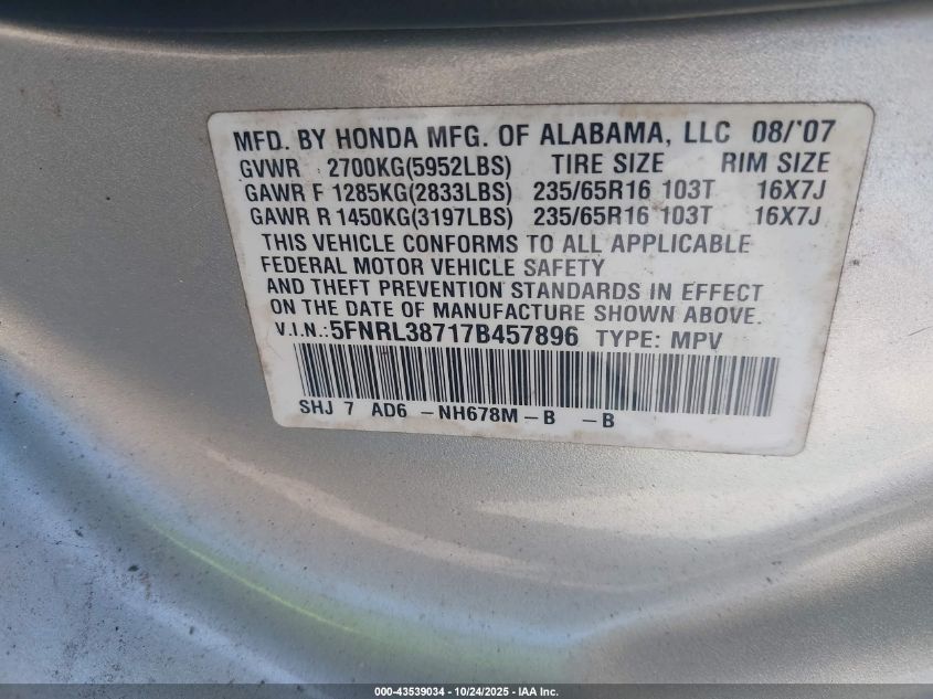 - Vin: 5FNRL38717B457896