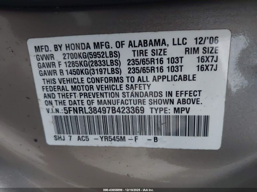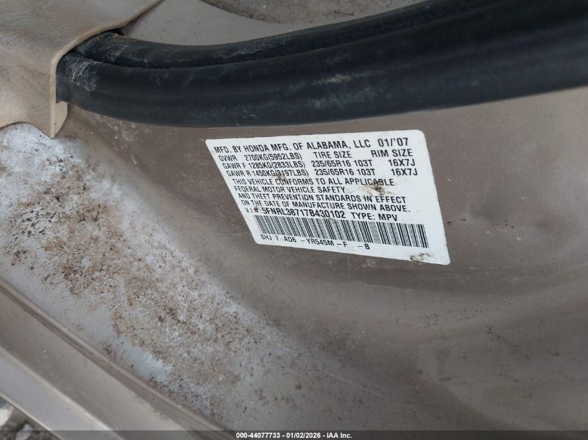 - Vin: 5FNRL38717B430102