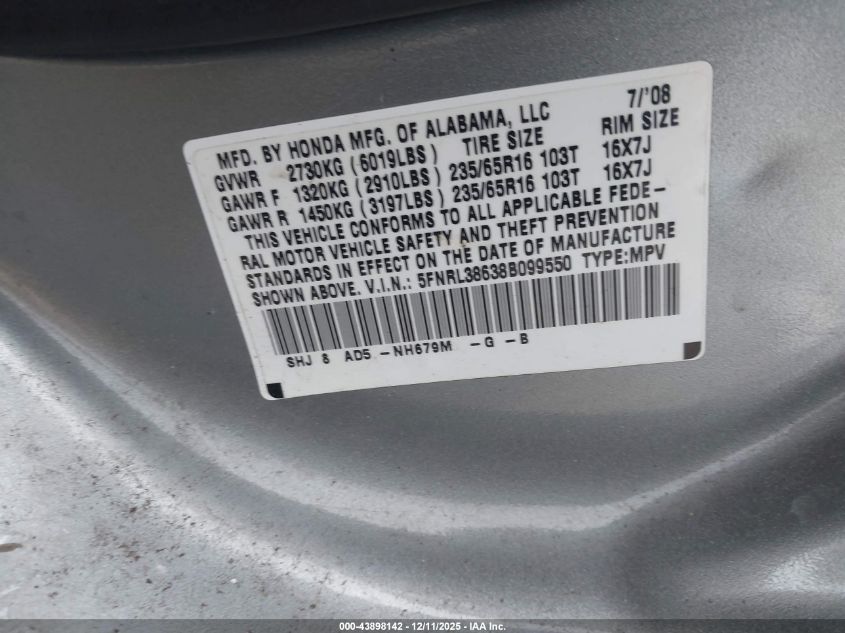 - Vin: 5FNRL38638B099550