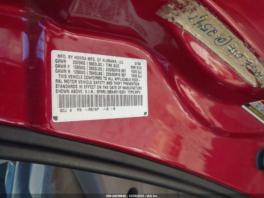 - Vin: 5FNRL188X4B116201