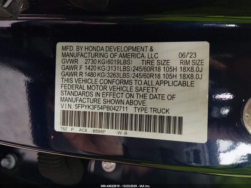 - Vin: 5FPYK3F54PB042711