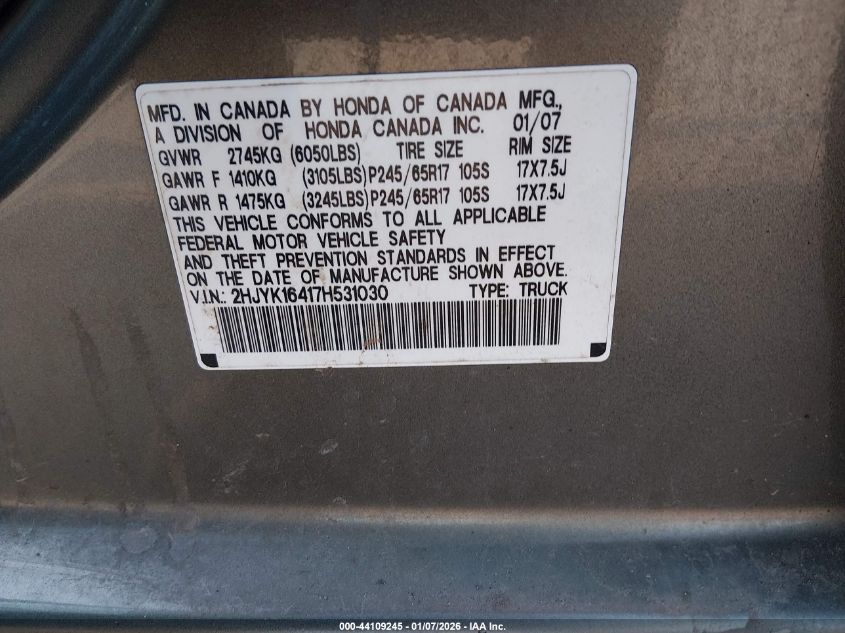 - Vin: 2HJYK16417H531030