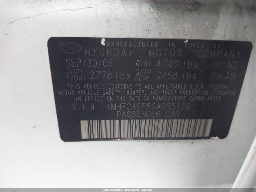- Vin: KMHFC46F86A035128