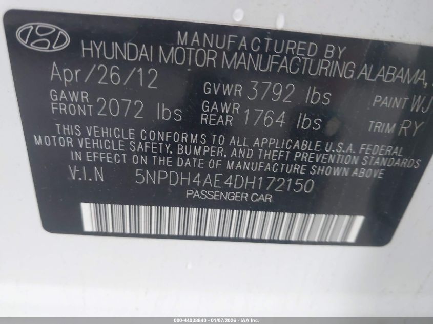 - Vin: 5NPDH4AE4DH172150