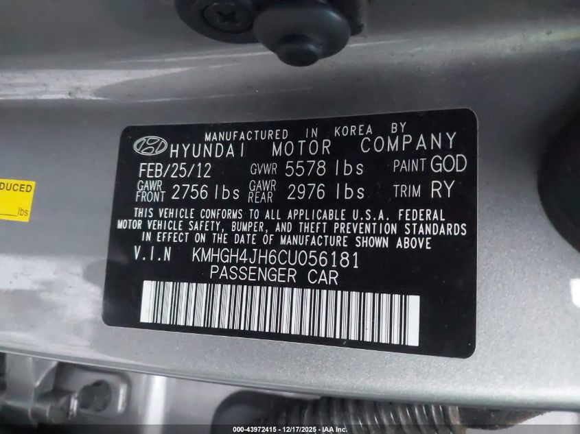 - Vin: KMHGH4JH6CU056181