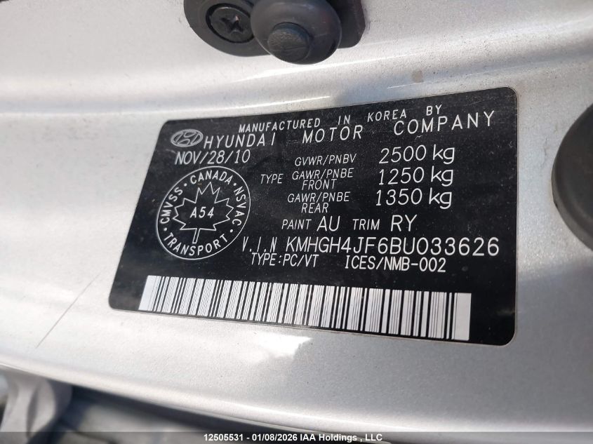 - Vin: KMHGH4JF6BU033626