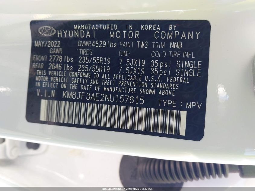 - Vin: KM8JF3AE2NU157815