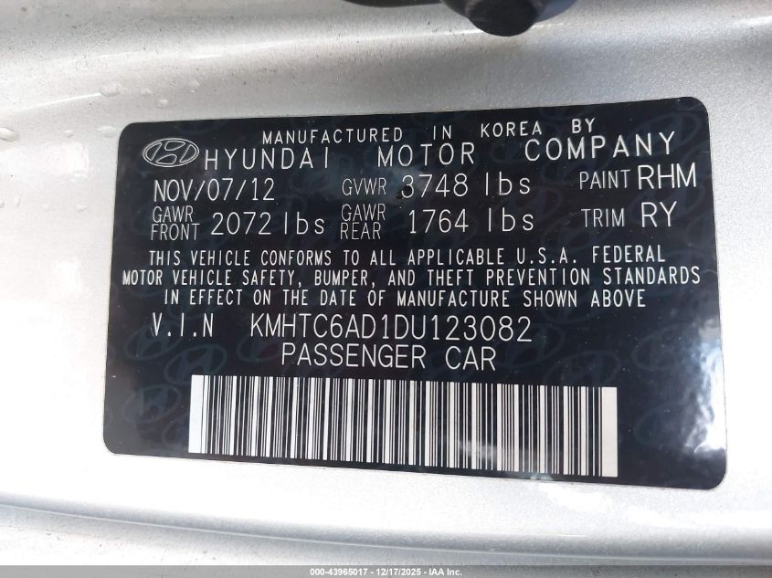 - Vin: KMHTC6AD1DU123082