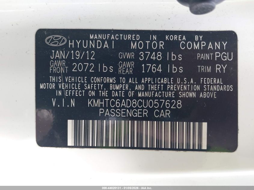- Vin: KMHTC6AD8CU057628