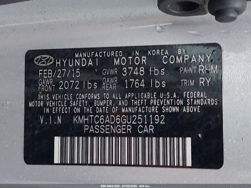 - Vin: KMHTC6AD6GU251192