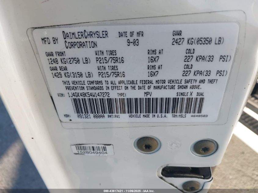 - Vin: 1J4GL58K84W149178