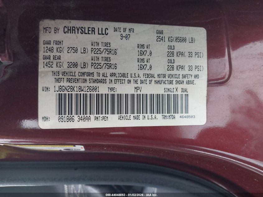 - Vin: 1J8GN28K18W126001