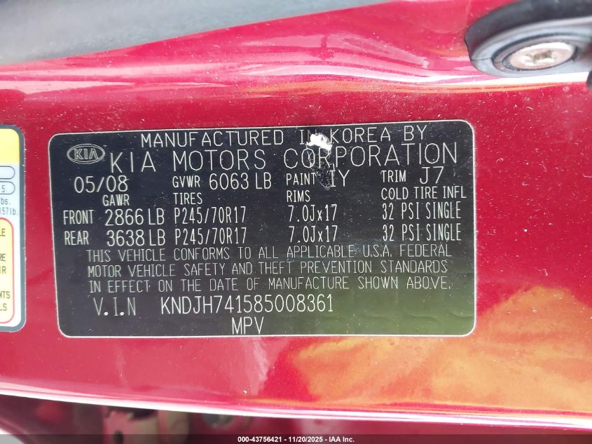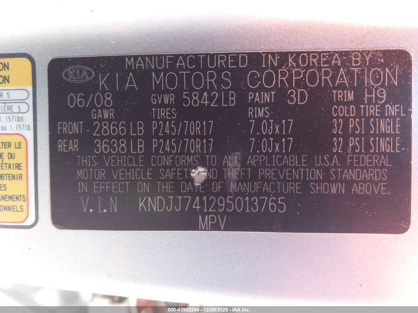 - Vin: KNDJH741X95011256