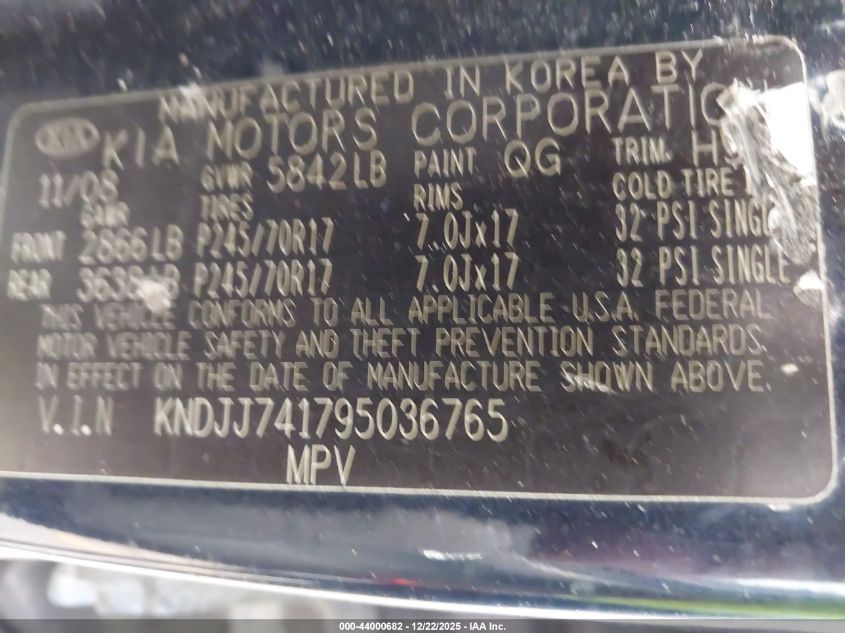 - Vin: KNDJJ741795036765