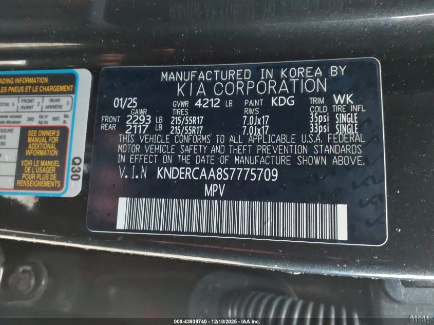 - Vin: KNDERCAA8S7775709