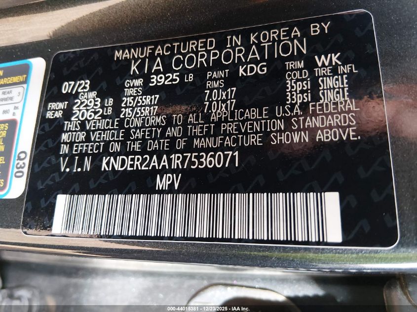 - Vin: KNDER2AA1R7536071