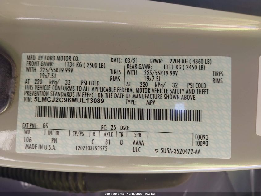- Vin: 5LMCJ2C96MUL13089