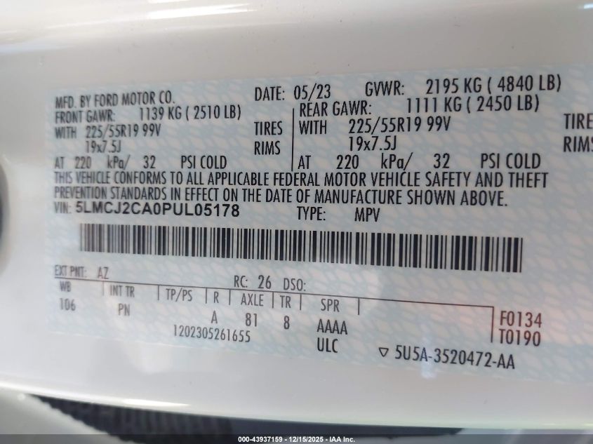 - Vin: 5LMCJ1CA0PUL04512