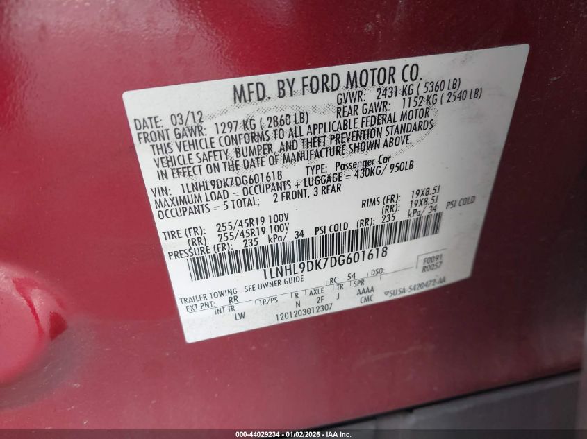 - Vin: 1LNHL9DK7DG601618