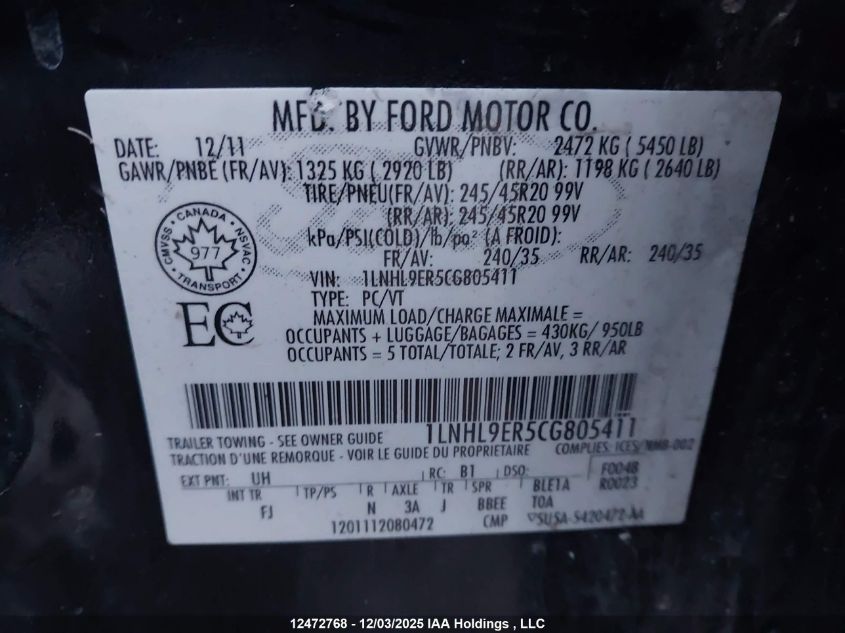 - Vin: 1LNHL9ER5CG805411