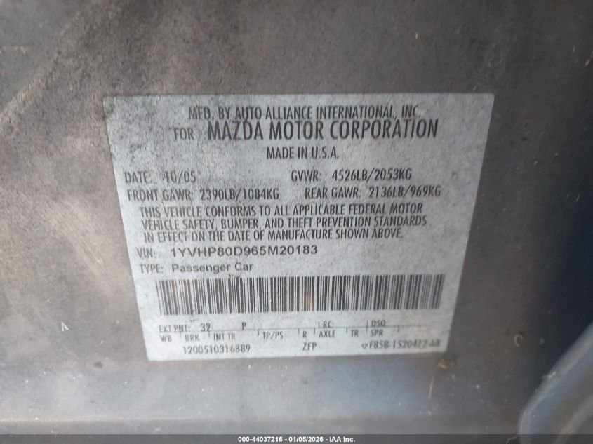 - Vin: 1YVHP84C055M38362